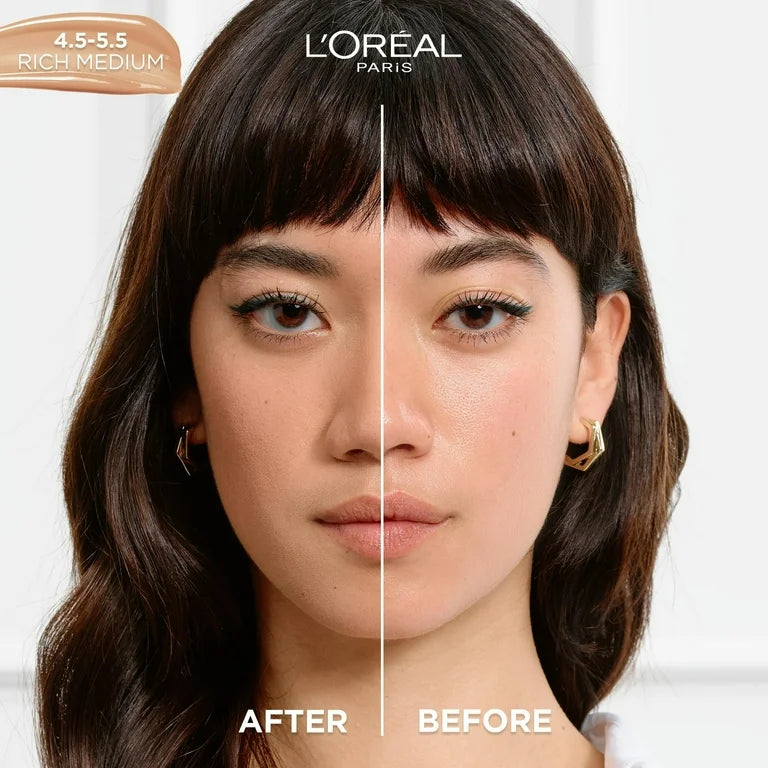 Makeup + Skincare = The Perfect Match. Introducing New True Match Nude Hyaluronic Tinted Serum foundation by L'Oreal Paris. With this tinted serum, skin instantly looks brighter, even and feels hydrated for a nude, radiant finish. The 1% Hyaluronic acid gives skin a hydrated feel and smooths over time, while the luminous mineral pigments provide lightweight coverage for a brightened complexion.