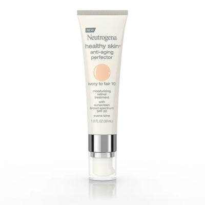 Use Neutrogena Healthy Skin Anti-Aging Perfector Tinted Facial Moisturizer with SPF 20 sunscreen to help reduce the appearance of fine lines. This all-in-one daily moisturizer combines the anti-aging properties of retinol with an SPF 20 moisturizer to offer blendable sheer coverage that helps even tone and smooth skin's texture while protecting against skin-damaging sunrays. The tinted moisturizer is enriched with clinically proven retinol treatment as well as vitamins and antioxidants to fight the appearance of wrinkles even after you take it off. Neutrogena Healthy Skin Anti-Aging Perfector SPF 20 works across skin tones for a natural, dewy finish with sheer coverage.